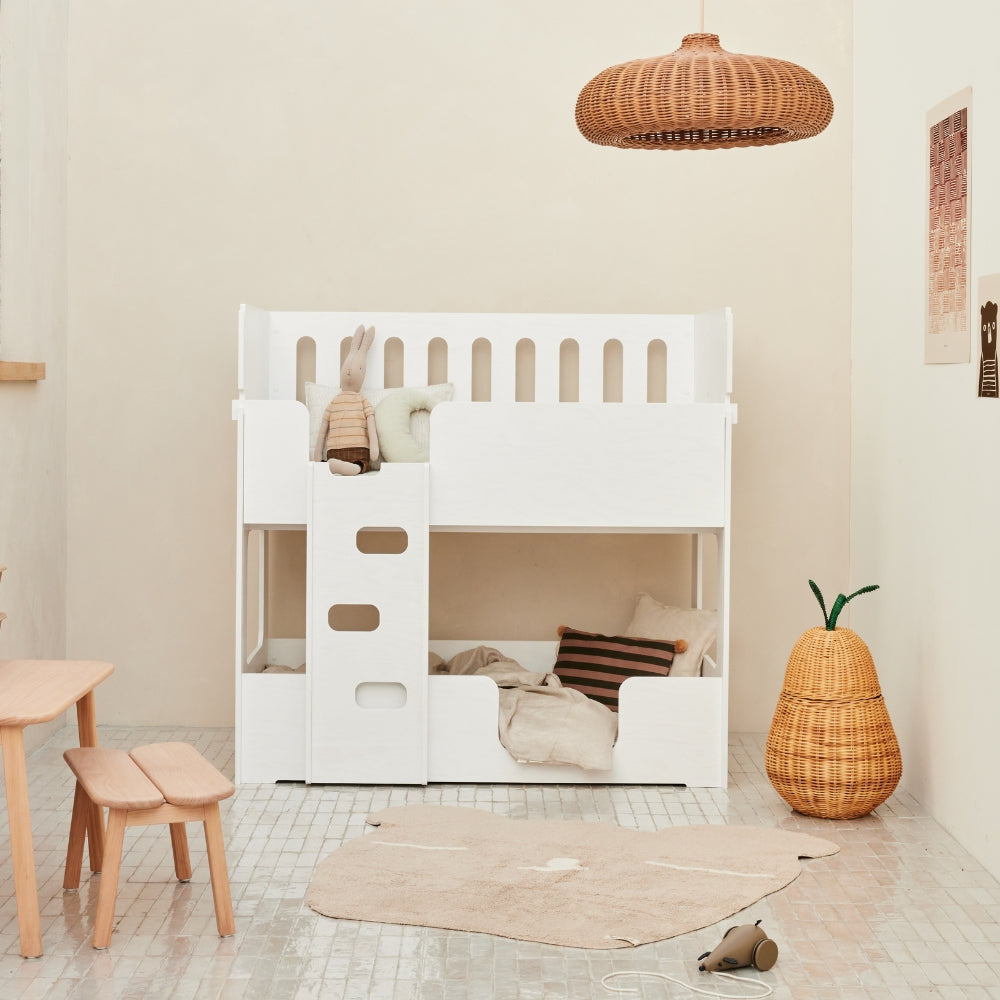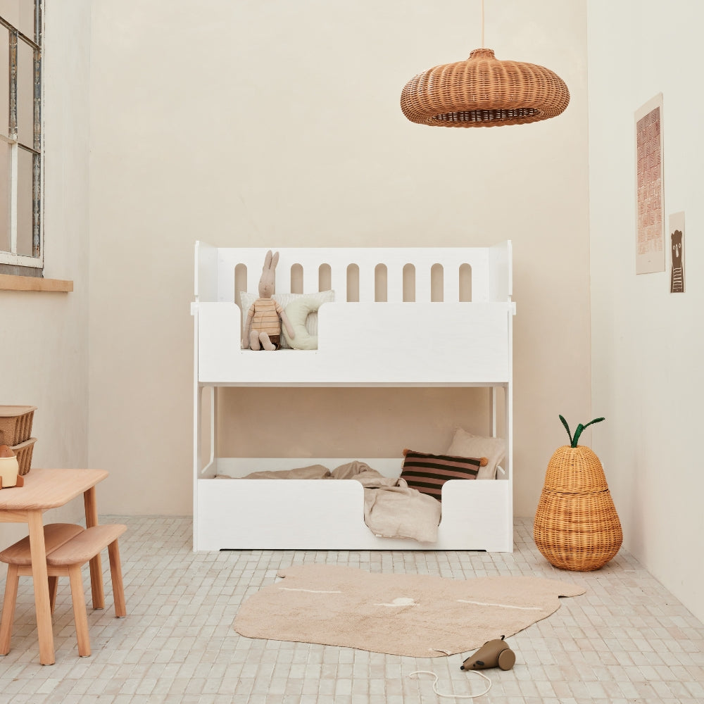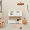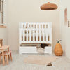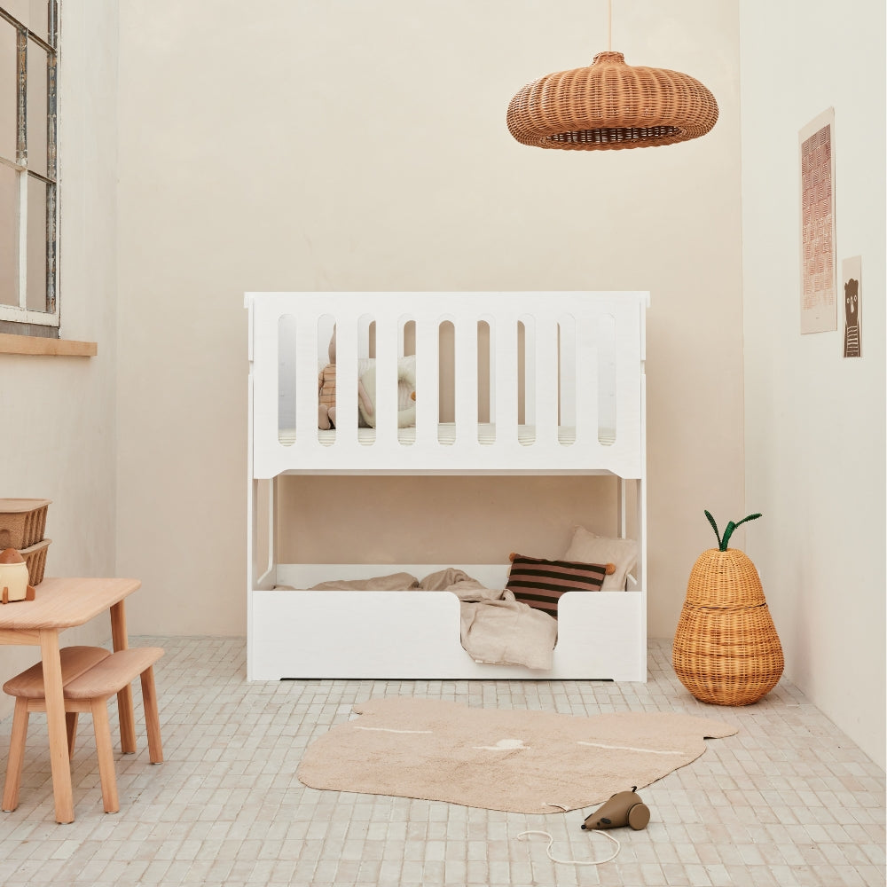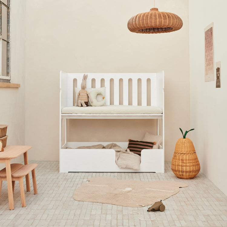 Functionality meets playfulness in a stylish design. The Cozy Cott Original White is a truly unique convertible bed that effortlessly transforms from a comfortable cot/toddler bed to a fun toddler/preschool bunk bed with its versatile conversion options. Perfect for any adventure the nursery has to offer. Cozy Cott grows with your children and always adapts to their needs!